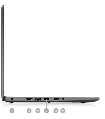 ![]() 1)電源ジャック、2)HDMI、3)LAN、7)USB 3.2 Gen1 Type-A、8)USB 3.2 Gen1 Type-A、9)ヘッドフォン/マイクジャックを配置。