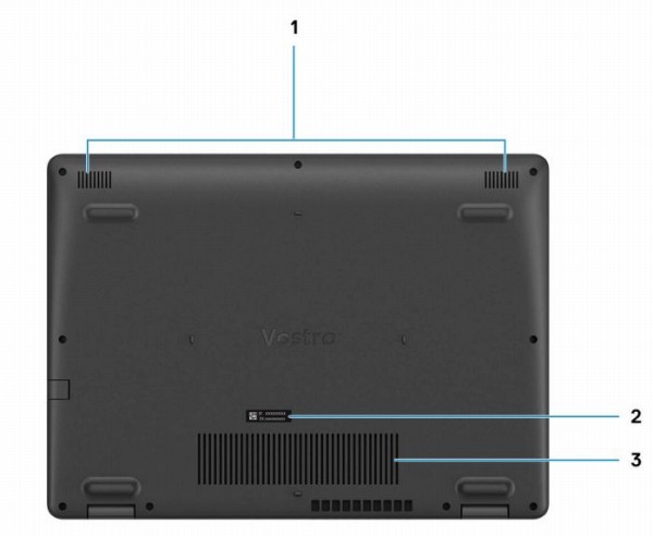 ![]() 1)スピーカー、2)サービスタグラベル、3)通気孔が配置されています。