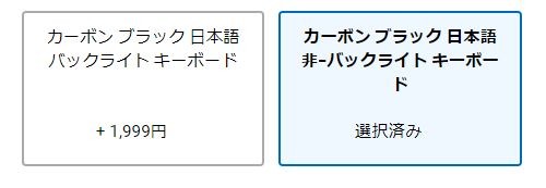 キーボードのバックライト非搭載モデルと搭載モデルを選択可能。