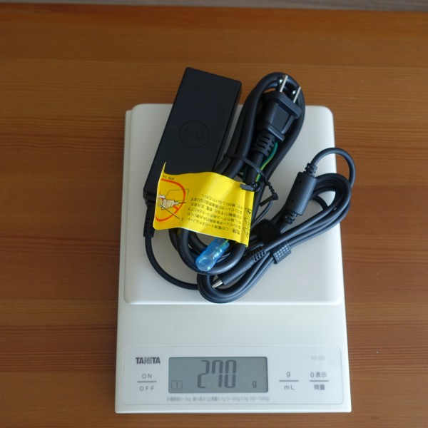 ![]() ACアダプタと電源ケーブルを合わせた重量は270g。