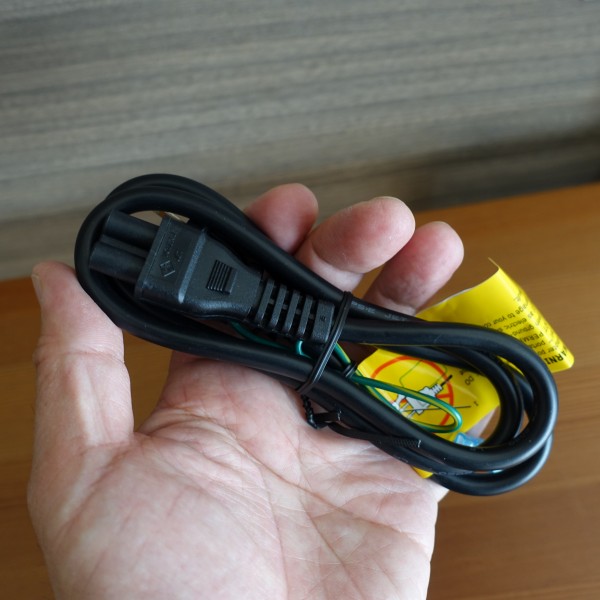 ![]() 電源ケーブル。足で引っかけたりしたときに破断しないよう、太めのつくりです。