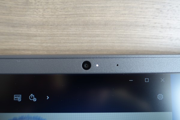 ![]() 液晶上部にWebカメラが配置されています。Webカメラの使用中、カメラ右のランプが点灯するため、カメラがどの状態にあるのかをすぐに確認できます。ライトの右にマイクが配置されています。