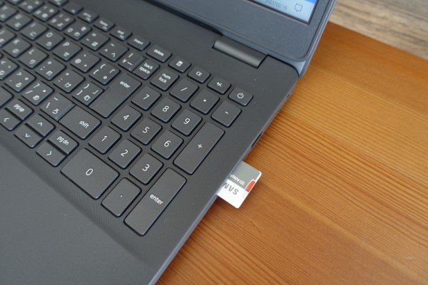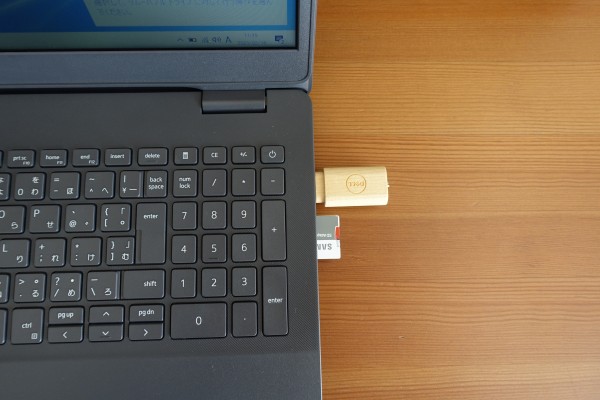 ![]() SDカードをカードリーダーの一番奥まで差し込んでみました。上の写真のように、SDカードがはみ出しているので、この状態で動かすときはカードを引っかけないよう注意が必要です。