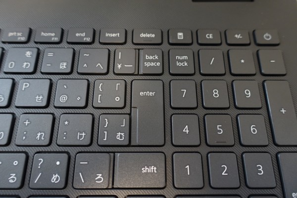 ![]() EnterキーとBackspaceキーが小さめで、左のキーと隣接したデル独自のキー配列を採用しています。慣れるまでは打ち間違えが発生しやすいかもしれません。