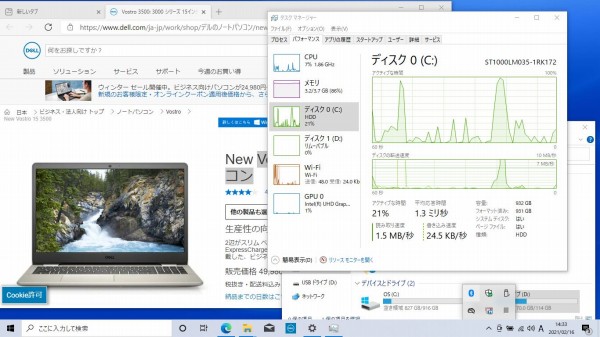 【レビュー機の構成】 第11世代 インテル Core i3-1115G4 プロセッサ/4GBメモリ/1TB HDD/インテルUHDグラフィックス(CPU内蔵) (*特別クーポンを利用すれば、Vostroデスクトップ/ノートPCをオンライン価格よりさらに3%オフで購入できます。通常よりもお得に購入できるクーポンなので是非ご活用ください。詳しくは、特別クーポン詳細ページを参照してください)