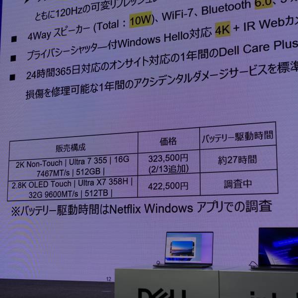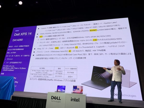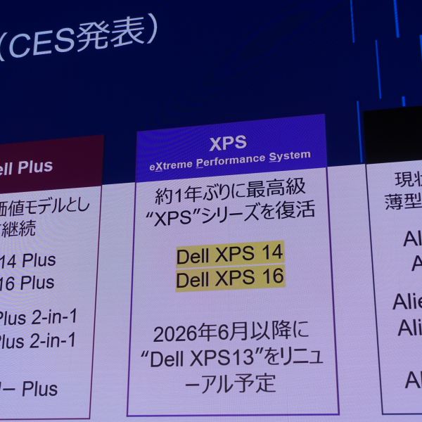 ![]() あとXPSシリーズとしてXPS 14/XPS 16以外にも13インチパネルのモバイルタイプのXPS 13が2026年6月以降に投入される予定とのこと。担当者によると、魅力的な価格設定になるということなので楽しみです。