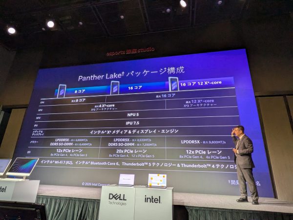 会場には、インテルCore Ultraシリーズ3の実物が展示されていました。