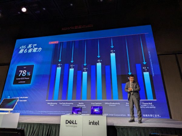また省電力性も高められており、AMD AI 365と比べて、最大78%の省電力を実現しているとのこと。
