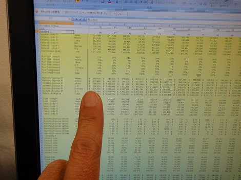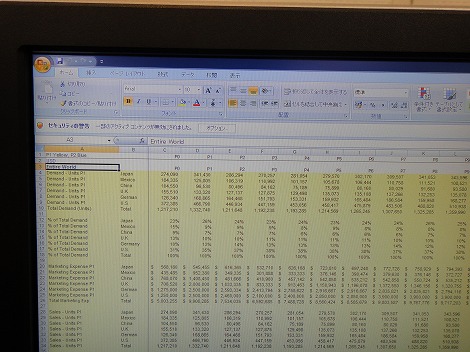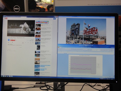 ぼくの知っている限りでは、4Kモニタでここまでの安さを実現したモデルはないですね。DELLからは他に4Kモニタとして、UP3214Q(31.5インチ)とUP2414Q(23.8インチ)が提供されていますが、それぞれ価格は約30万円、約10万円となっており、価格だけみれば、このP2815Qが28インチで約7万円と、圧倒的なコストパフォーマンスの高さを実現しています。 ![]() 会場には2台のP2815Qが展示されていましたが、そのうちの1台にはExcelの表が全画面表示されていました。ちょっと遠目からでは何が表示されているのかわかりにくいのですが、 ![]() これすべて数字が入った表です。こうやって見ると、解像度の高さを実感できますね。 ![]() 表示も鮮明度が高く、にじんだりしていないので見やすいと思います。 ![]() ただし、正直言って表示が非常に小さい!指と比べるとこんな感じとなり、小ささがわかると思います。28インチパネルという比較的大きなパネルを搭載していても、4K出力すれば、これだけ表示が小さくなるんですね。 ![]() HDの4倍の表示領域が確保できるので、多くのデータを表示したい人、複数のウィンドウを並べて効率的に作業したい人向きといえます。 ![]() こんな風に、左右に分割しても十分作業できます。 【P2815Qの主なスペック】